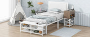 Twin Size Platform Bed With 2 Tier Storage Shelves, Storage Cabinet - White