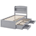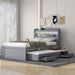 Twin Long Platform Bed With LED Headboard, Charging Station, Twin Trundle And 2 Drawers - Gray