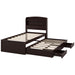 Twin Long Platform Bed With LED Headboard, Charging Station, Twin Trundle And 2 Drawers - Dark Brown