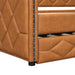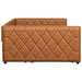 Upholstered Full Long Daybed With Trundle And LED Armrests - Brown