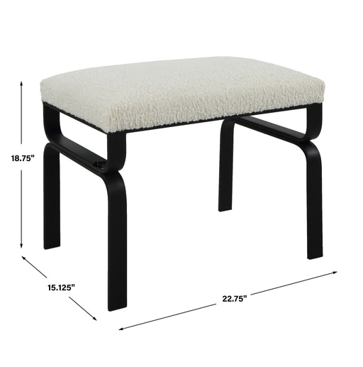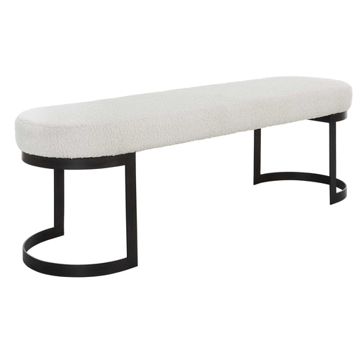 UttermostThe Modern Hover Bench Is Streamlined With An Aged Black Curved Iron Base And Cushioned Seat. Upholstered In An Ivory Chenille Boucle Performance F...