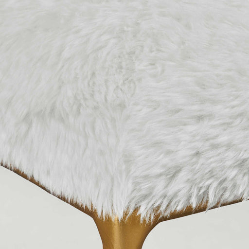 AcmeElegant Design: The Bagley II Bench features a luxurious white faux fur padded seat complemented by a sleek gold-finished metal base, offerin...