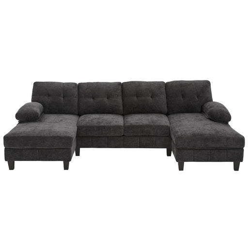 Original price $1,099.00Original price $1,099.00 - Original price $1,099.00Original price $1,099.00Current price $979.00$979.00 - $979.00Current price $979.00U-Shaped Sectional Sofa 103.5" Black Chenille Fabric Couch With Dual Chaise Lounges, Storage Pockets, Armrest Pillows