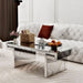 Luxury Rectangular Mirror Coffee Table With Fluted Tempered Glass, Light Luxury Style - Silver