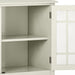 - Features 2 tempered glass doors that open to a cabinet with 2 adjustable shelves