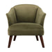 This Barrel Back Style Accent Chair Offers A Cozy Feel, Featuring A Soft Olive Toned Polyester Velvet, Finished With A Welt Trim And Tapered Birch Legs In Dark Walnut.