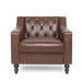 Contemporary Club Chair With Button Tufting And Birch Wood Legs - Dark Brown