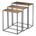Functional Nesting Tables Constructed In An Aged Black Iron, Featuring A Cast Textured Aluminum Slab Top Finished In A Plated Antique Gold. S- 17"x 22"x 9", M- 20"x 24"x 10", L- 21"x 26"x 11"