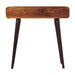- Chestnut Curved Hallway Table - This simple, elegant console table has beautifully curved edges to fit perfectly in any living space, this 100% solid mango wood unit has been built with sustainably sourced timbers and has two drawers to help you keep your home organized by storing away any little household objects. It has shiny knobs and has a fine chestnut finish with 4 Nordic style legs.