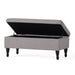 - Versatile Grey Fabric Ottoman – Upholstered in soft grey fabric, this ottoman offers seating comfort, concealed storage, and chic dark wooden legs for any room.