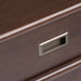 - Features a spacious drawer with metal drawer glides and recessed drawer pull, hardware finish