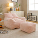 Giant Plush Bean Bag Chair With Armrests And Footstool For Adults - Pink