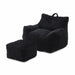 Giant Plush Bean Bag Chair For Adults With Armrests And Footstool - Black
