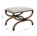 The Icaria Bench Features A Rustic Curved Iron Frame With A Nautical Touch, Wrapped In Natural Fiber Rope Accents. The Cushioned Top Is Upholstered In An Oatmeal Cotton Blend Fabric.