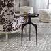 Providing An Organic Global Feel, This Cast Aluminum Accent Table Features A Shapely Curved Base And Round Top, Finished In A Plated Antique Bronze.