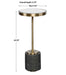 Stylish And Sophisticated, This Round Accent Table Features A Gray Faux Shagreen Base Paired With An Iron Support In Rich Brushed Brass And A Beveled Mirror Top.