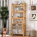- STYLISH AND VERSATILE DESIGN: Modern leaning-ladder structure with a natural wood-tone finish enhances any room.