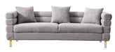 Luxurious And Comfortable Upholstered Sofa With Golden Legs And Pillows For Living Room And Reception Area - Gray