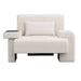 - Asymmetrical Armrest Design: Unique armrest design includes a wide, thick armrest with a wooden plank surface, serving as a functional workstation. A hidden storage compartment beneath provides space for small essentials like remote controls and magazines.