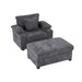 Modern Oversized Chair With Ottoman, Chenille Fabric Sofa Bed, Accent Chair Comfy Sofa With Cupholders And USB Charging Ports Chair For Living Room - Dark Gray