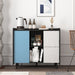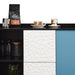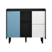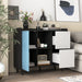 Modern Sideboard Buffet Cabinet With Doors And Unique Panel Styling - Black / Blue