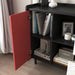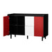 Modern Sideboard Buffet Cabinet With Red Doors And Unique Panel Styling - Black