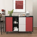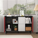 Sideboard Buffet Cabinet With Doors And Unique Panel Styling - Black / Red