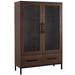 Modern Style Tall Display Cabinet With LED Lighting, Tempered Glass Door, 2 Drawers - Black / Dark Walnut