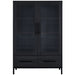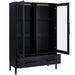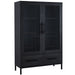 Modern Style Tall Display Cabinet With LED Lighting, Tempered Glass Door, 2 Drawers - Black