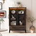 Modern Style Tall Display Cabinet With LED Lighting, Tempered Glass Door, 2 Drawers