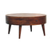 - Odyssey Table - This beautifully designed table is constructed from 100% solid mango wood in a finish and has a smooth circular design along with a shiny brass knob on the drawer for easy access. A lovely, simple addition and accent piece for the home which can be incorporated with different interiors and styles of furniture.
