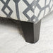 - POLYESTER BLEND UPHOLSTERY: Wrapped in a polyester blend with a geometric pattern in neutral gray and white tones, adding a modern touch to any decor.