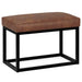 - Upholstered with a durable Distressed Saddle Brown Vegan Faux Leather