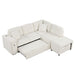 Sectional Sofa L-Shaped Sofa Couch Pull-Out Sofa Bed With A Movable Ottoman, Two USB Ports And Two Cup Holders For Living Room - Beige
