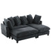 Upholstered L Shaped Sectional Sofa With Storage, Movable Ottoman, And 6 Throw Pillows - Black
