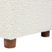 • Luxurious Upholstery: Upholstered in boucle fabric, this ottoman offers a soft, plush texture with intricate looped yarns, mimicking the look of faux sheepskin or sherpa for a cozy aesthetic.
