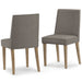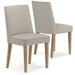 - Contemporary styling includes piping detail on seat and seat back, and solid rubberwood legs