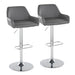 Daniella - Contemporary Adjustable Barstool With Swivel With Rounded Rectangle Footrest (Set of 2) - Chrome / Gray