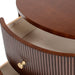 • Natural Beauty: The natural wood finish in deep accentuates the authentic beauty of the material, while satin gold drawer pulls add a touch of opulence.