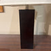 Dark Wood Glass Top Dining Room Table With 6 Black Leather Cushioned Chairs