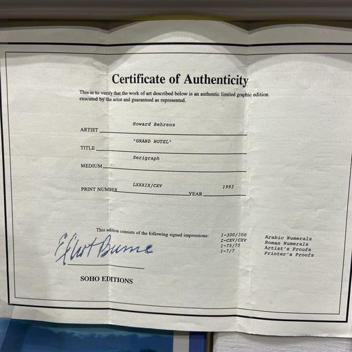 Consign Furniture Liberty Lake"Grand Hotel" By Howard Behrens - With Certificate Of Authenticity