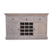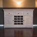 - Solid Wood Acid Wash Wine Storage Unit - Discover our Acid Wash Wine Storage Cabinet, a perfect blend of sustainability, style, and functionality. Crafted with care, this piece brings a touch of vintage charm to your modern home. It has storage options with 3 drawers + 2 cabinets, and 12 bottle slots. Perfect to add in a dining room or hallway.