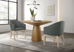 Looking to elevate your dining space? This 3-piece table and chair set from the Jasper collection will bring a sleek and modern style to your dining experience. The 47" round, pedestal base dining table and barrel chair set is the perfect center piece for your dining room.