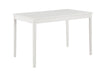 - The Lavinia 5-Piece Dining Set, a stylish and functional addition to your dining area. This set comprises a rectangular table and four side chairs, each designed with a classic white finish to complement any decor. The table offers a compact space for dining or entertaining, while the chairs provide ergonomic support and a touch of sophistication with their ladder backrests. Whether you're enjoying a cozy family dinner or hosting guests, this dining set offers the perfect setting to create lasting memories. Upgrade your dining space today with the Lavinia Dining Set and experience the joy of dining in style and comfort.
