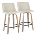 Toriano - Contemporary Fixed Height Counter Stool Swivel With Round Footrest (Set of 2) - Whitewashed / Cream