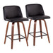 Toriano - Mid-Century Modern Fixed Height Counter Stool With Square Footrest (Set of 2) - Walnut / Black