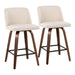 Toriano - Mid-Century Modern Fixed Height Counter Stool With Square Footrest (Set of 2) - Walnut / Cream