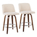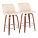 Toriano - Mid-Century Modern Fixed Height Counter Stool With Round Footrest (Set of 2) - Walnut / Cream