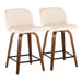 Toriano - Mid-Century Modern Fixed Height Counter Stool With Swivel With Square Footrest (Set of 2) - Walnut / Cream