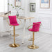 Velvet Bar Chair, Pure Gold Plated, Unique Design, 360 Degree Rotation, Adjustable Height, Suitable For Dining Room And Bar, (Set of 2) - Rose Red